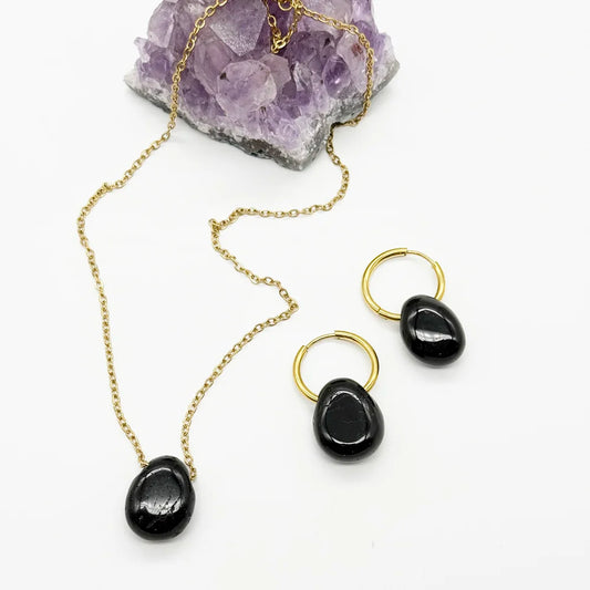 Pendientes Aro con Turmalina negra para protección
