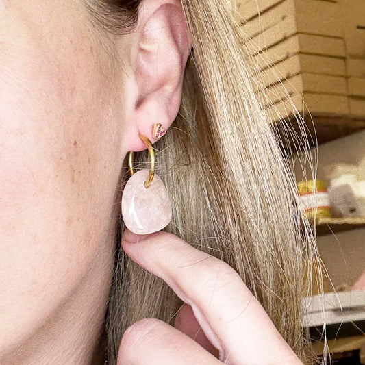 Pendientes Aro con Cuarzo Rosa