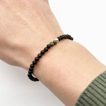 Pulsera finita de Cuarzo Blanco con Turmalina en bolitas
