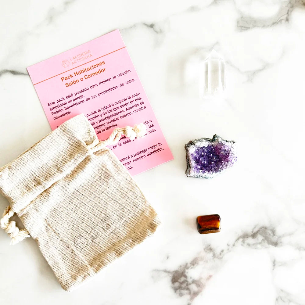 Colgantes, packs y piezas con turmalina, cuarzo y amatista entre otras. Hechos...