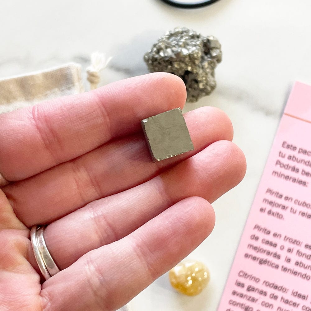 - A Pyrite in the shape of an irregular cube measuring between 1cm/2cm ( depending on each piece) to put in your wallet