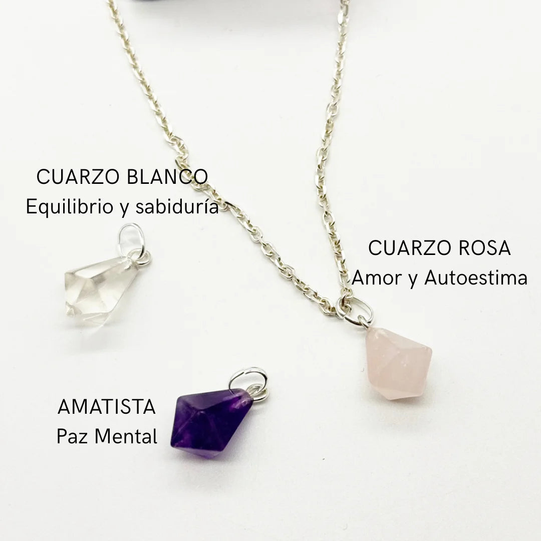 Estos colgantes en punta de péndulo de cuarzo natural son piezas pensadas para acompañarte y ayudarte a equilibrar tu energía de forma consciente y suave.