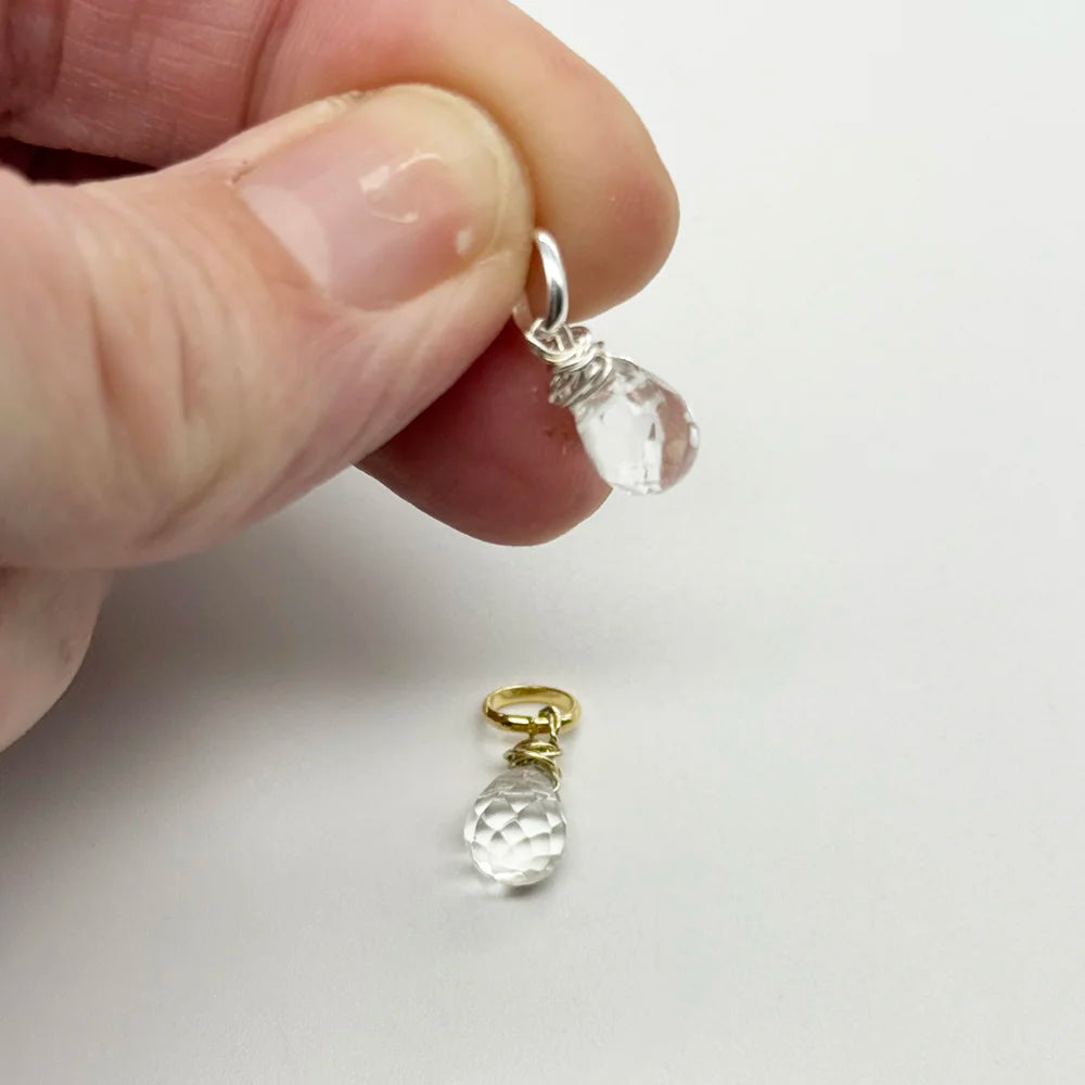 Lágrimas mini de Cuarzo rosa, Fluorita, Amazonita o cuarzo blanconatural engarzadas a mano en plata 925.