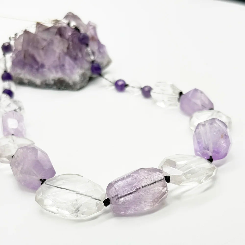Collar único de Amatista y Cuarzo Blanco en Plata 925º