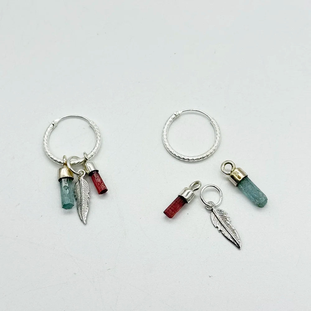 *Se vende el par de aros con el par de plumas, el par de aguamarinas y el par de turmalinas.