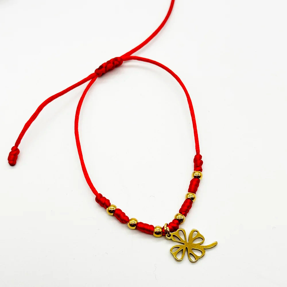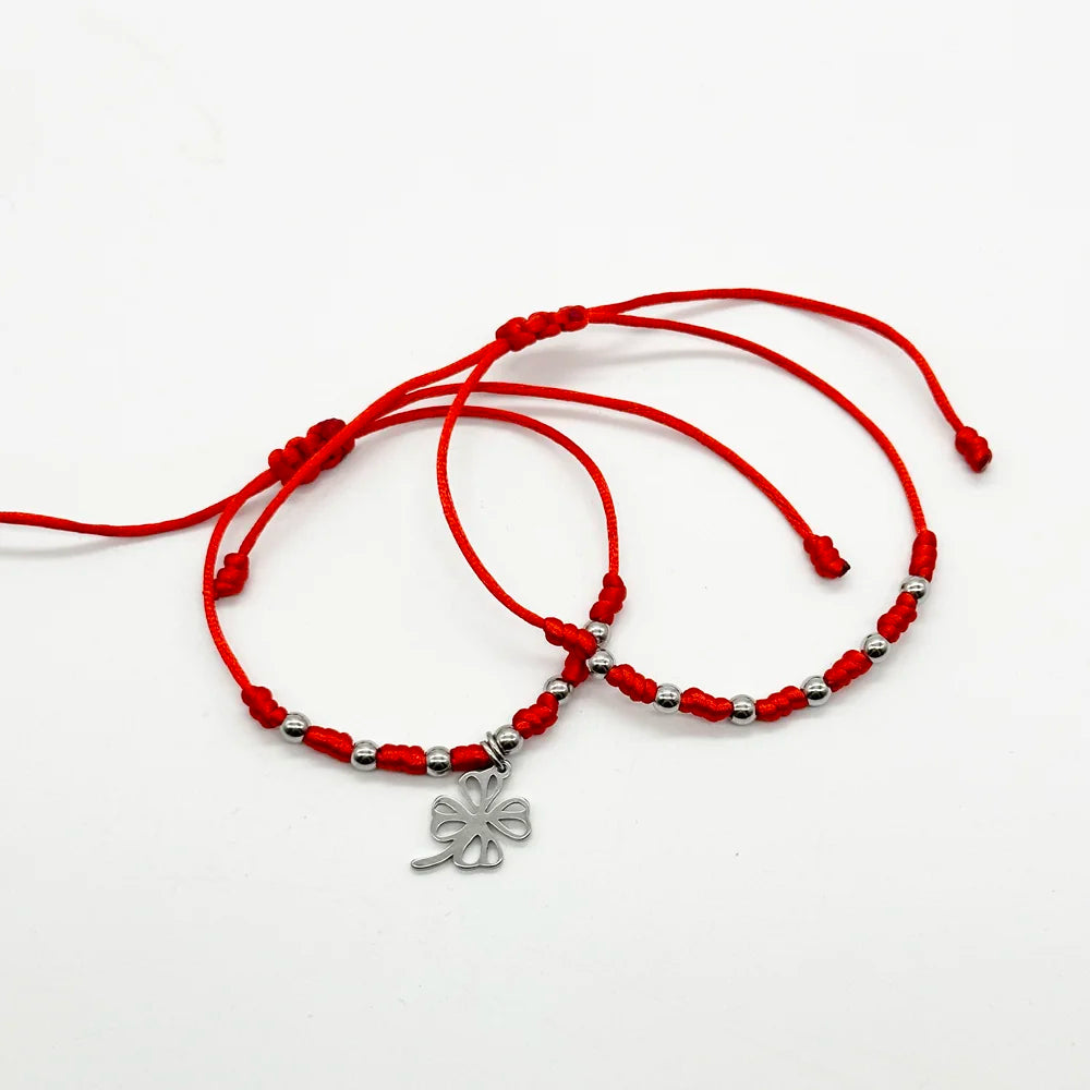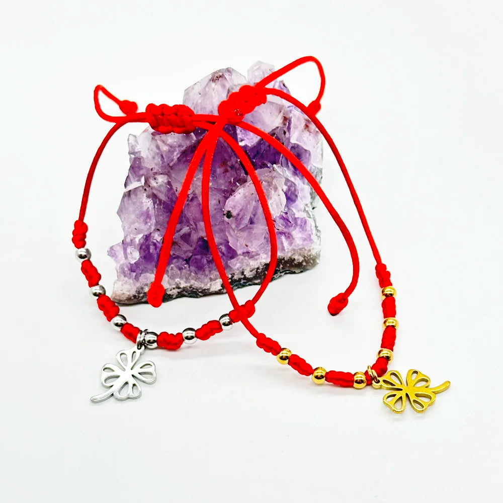Pulsera roja 7 nudos y el Trébol de la suerte