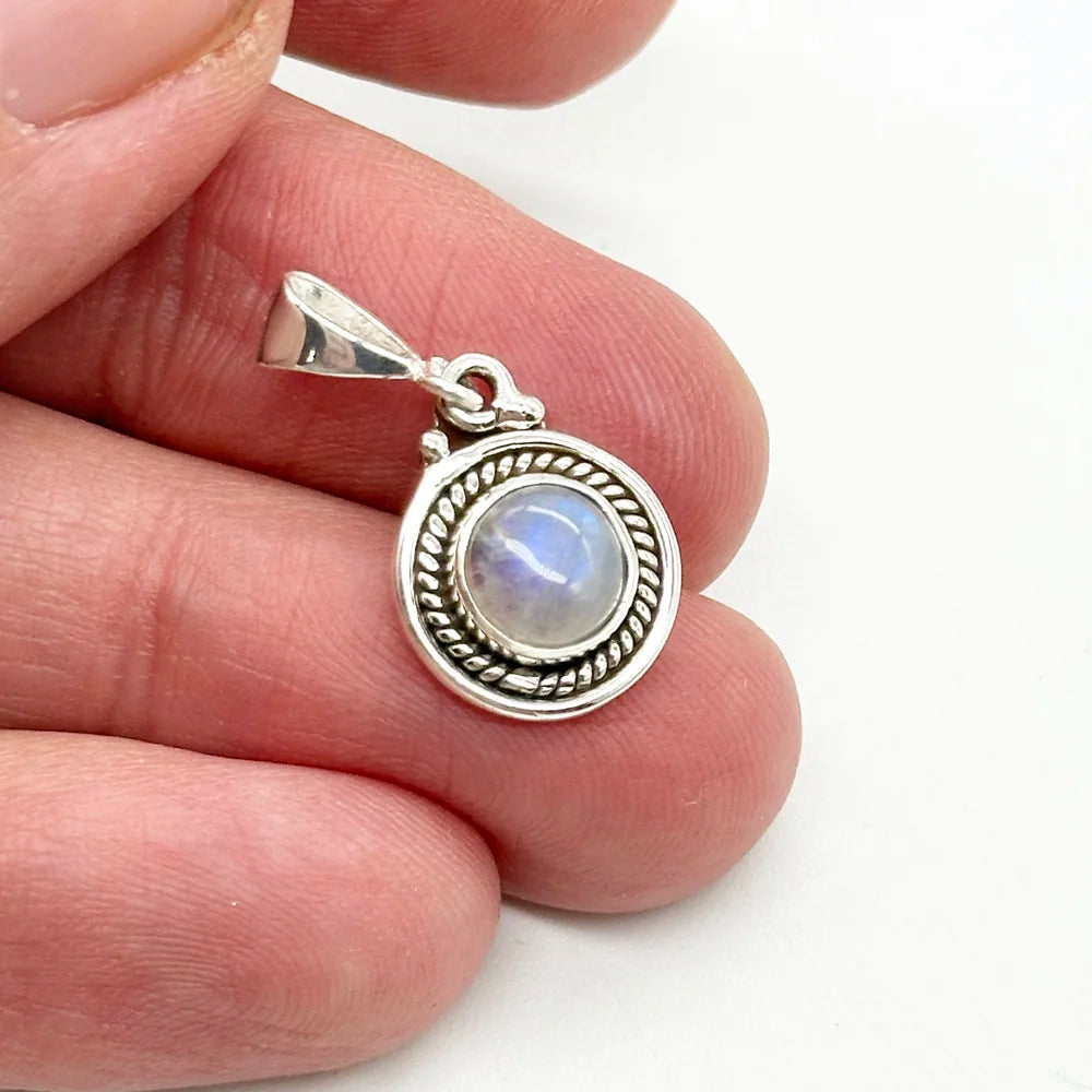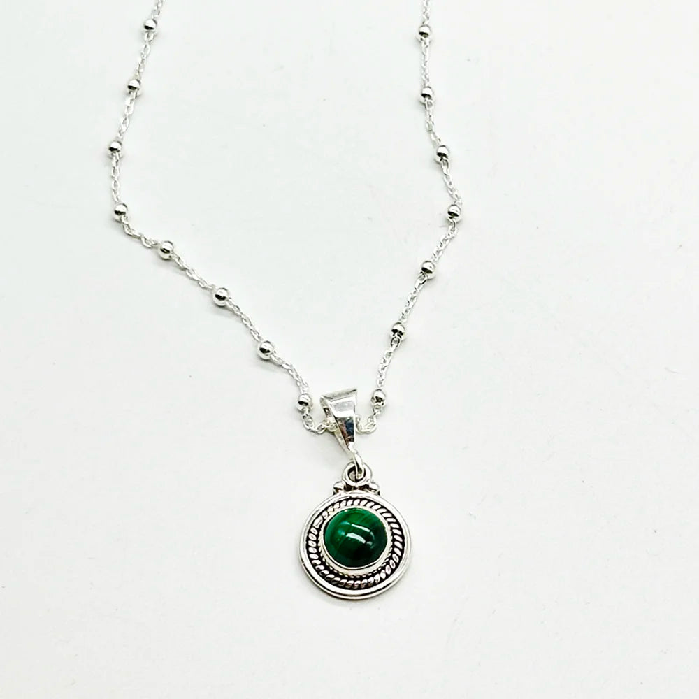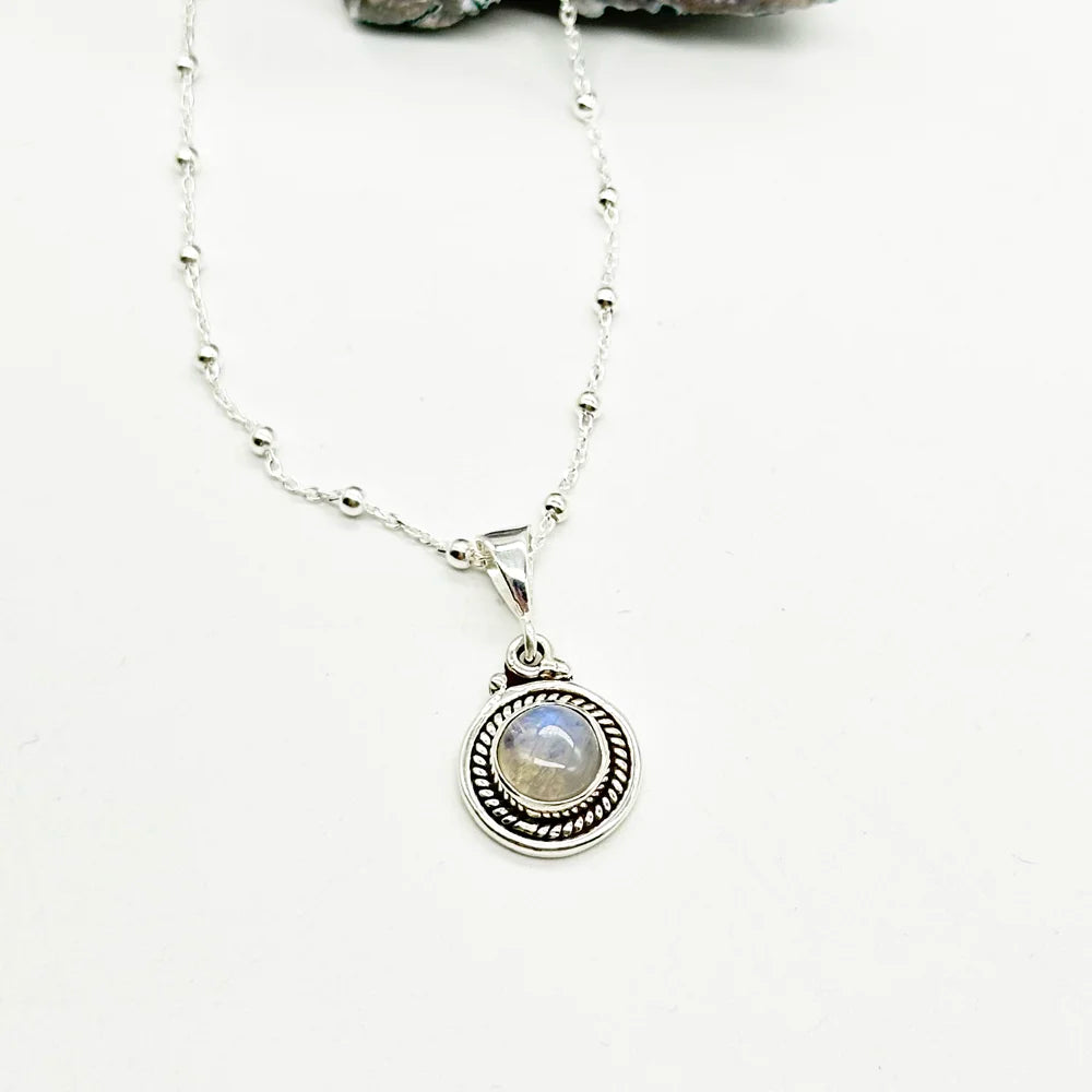 - Colgante redondo de mineral natural a elegir entre: piedra luna o Malaquita